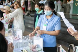 บรรยากาศพิธีทำบุญอุทิศส่วนกุศลให้แก่ผู้เสียชีวิตในโรงพยาบาลสงขลานครินทร์ ประจำปี 2567 ผศ.ดร.นิวัติ แก้วประดับ อธิการบดีมหาวิทยาลัยสงขลานครินทร์ และ รศ.นพ.เรืองศักดิ์ ลีธนาภรณ์ คณบดีคณะแพทยศาสตร์ พร้อมด้วยคณะผู้บริหารคณะแพทยศาสตร์ กรรมการมูลนิธิโรงพยาบาลสงขลานครินทร์ บุคลากรคณะแพทยศาสตร์ ตลอดจนประชาชนทั่วไป เข้าร่วมพิธีทำบุญโรงพยาบาลสงขลานครินทร์ ประจำปี พ.ศ. 2567 ณ บริเวณลานชั้น 1 อาคารโรงพยาบาลสงขลานครินทร์