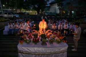 หลังจากนั้นผู้บริหารและแขกผู้มีเกียรติพร้อมกันบริเวณชั้น 1 อาคารโรงพยาบาลสงขลานครินทร์ พิธีกรกล่าวนำความเป็นมาพิธีทำบุญอุทิศส่วนกุศลฯ ประธานในพิธีจุดธูปเทียน บูชาพระรัตนตรัย ผู้ร่วมพิธีกล่าวคำบูชาพระรัตนตรัย ผู้บริหารถวายผ้าไตร อาราธนาพระปริตร พระสงฆ์เจริญพระพุทธมนต์ ผู้ร่วมงานถวายสังฆทาน พร้อมเครื่องไทยธรรม พระสงฆ์อนุโมนา กรวดน้ำ แผ่เมตตา และกล่าวคำลาพระรัตนตรัย เป็นอันเสร็จพิธี ซึ่งในปีนี้ มีผู้ป่วย ญาติผู้ป่วย ตลอดจนญาติผู้เสียชีวิตเข้าร่วมพิธีเป็นจำนวนมาก