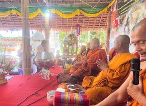 พิธีทำบุญ ถวายภัตตาหารแด่พระภิกษุสงฆ์ เนื่องในงานทำบุญเดือน 5 ห่มผ้าพระนอน ปิดทองหัวใจองค์พระ