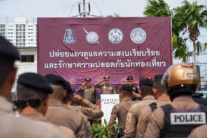 พิธีปล่อยแถวดูแลความสงบเรียบร้อยและรักษาความปลอดภัยนักท่องเที่ยวงานลอยกระทงประจำปี 2568