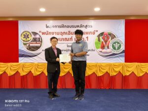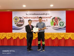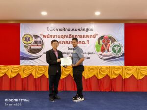 วันพฤหัสบดีที่ 24 กรกฎาคม พ.ศ.2568 เวลา 16.00 น. คุณกิตติชัย ธรรมศิริพงษ์ รองประธานมูลนิธิฯ,คุณวิเชียร เดชธีรชัย หัวหน้าแผนกบรรเทาสาธารณภัย-กู้ภัย พร้อมด้วย นพ.ประวิทย์ วรรณโร รองผู้อำนวยการฝ่ายการแพทย์ ,พญ.ณัฐยา พรมวัง หัวหน้ากลุ่มงาน เวชศาสตร์ฉุกเฉิน ,พว.พัชรี พร้อมมูล หัวหน้ากลุ่มงานการพยาบาลผู้ป่วยอุบัติเหตุและฉุกเฉิน และคณะผู้ฝึกสอนทุกท่าน ได้เข้าร่วมพิธีปิดและมอบประกาศนียบัตร ให้กับผู้เข้าอบรมผู้ปฏิบัติการแพทย์ฉุกเฉิน ระดับพนักงานฉุกเฉินการแพทย์ ที่ได้จัดขึ้นโดยกลุ่มงานการพยาบาลผู้ป่วยอุบัติเหตุและฉุกเฉิน โรงพยาบาลหาดใหญ่ ที่ได้จัดขึ้นตั้งแต่วันที่ 7 – 24 กรกฎาคม พ.ศ.2568 ณ ห้องประชุมชั้น2 ตึกศูนย์วิทยุกู้ภัยจังหวัดสงขลา(ศูนย์มิตรภาพ) ของมูลนิธิฯ