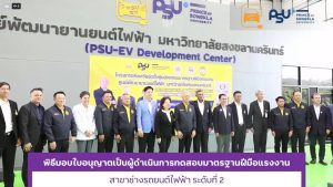 วันที่ 14 มีนาคม 2568 นายทรงพล จังศิริวัฒนธำรง ประธานหอการค้าจังหวัดสงขลา มอบหมาย นายรุ่งโรจน์ สิริโปราณานนท์ รองประธานหอการค้าจังหวัดสงขลา ร่วมเป็นเกียรติในพิธีรับมอบใบอนุญาตเป็นศูนย์สอบมาตรฐานฝีมือแรงงานช่างซ่อมบำรุงรถยนต์ไฟฟ้า ณ อาคารปฎิบัติงาน ศูนย์พัฒนายานยนต์ไฟฟ้า มหาวิทยาลัยสงขลานครินทร์ วิทยาเขตส่วนขยาย ต.ทุ่งใหญ่ อ.หาดใหญ่ จ.สงขลา