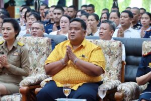 (14 ส.ค.68) นายกแป้น มอบหมาย นายกิตติศักดิ์ เพชรพรหมศร รองปลัดเทศบาล ร่วมพิธีสมโภชและนมัสการพระบรมสารีริกธาตุองค์ปฐมฯในครั้งนี้ พร้อมทั้ง รองผู้ว่าราชการจังหวัดสงขลา และแขกผู้มีเกียติทุกหน่วยงาน ทุกภาคส่วนที่เกี่ยวข้องเข้าร่วมด้วย โดยมีวัตถุประสงค์เพื่อเทิดพระเกียรติ และถวายความจงรักภักดีต่อสถานบันพระมหากษัตริย์ รวมถึงเป็นสถานปฏิบัติธรรมและเผยแพร่พระพุทธศาสนา อีกทั้งยังเป็นการเสริมศักยภาพการท่องเที่ยวและเศรษฐฏิจให้แก่ประชาชนในพื้นที่ ณ ห้องประชุมกองบิน 56