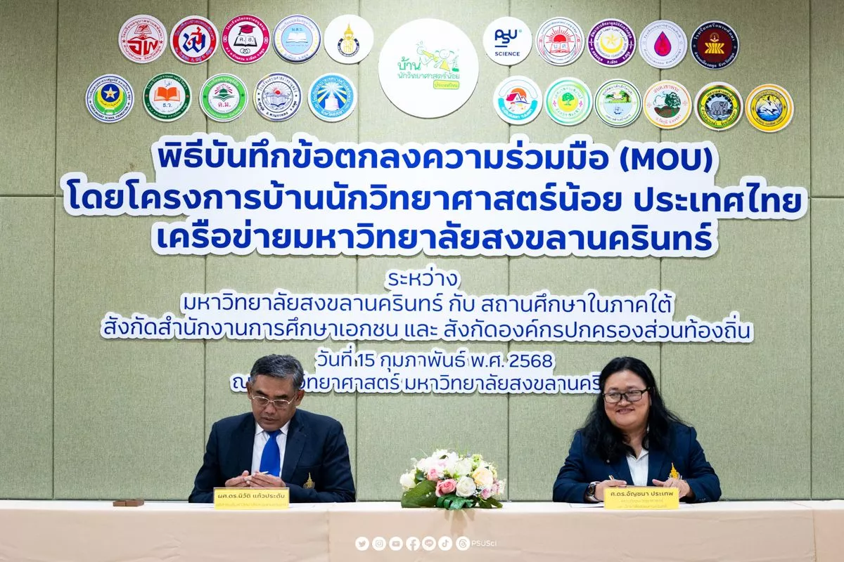 เมื่อวันเสาร์ที่ 15 กุมภาพันธ์ ที่ผ่านมา ณ ห้อง BSc3 คณะวิทยาศาสตร์ มหาวิทยาลัยสงขลานครินทร์ ได้จัดพิธีลงนามบันทึกข้อตกลงความร่วมมือ (MOU) โครงการบ้านนักวิทยาศาสตร์น้อย ประเทศไทย ภายใต้เครือข่ายมหาวิทยาลัยสงขลานครินทร์ เพื่อพัฒนาและขยายเครือข่ายโรงเรียนที่เข้าร่วมโครงการในพื้นที่ภาคใต้เพิ่มเติมอีก 28 โรงเรียน