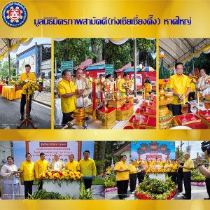 บริเวณสวนหย่อมเทศบาลนครหาดใหญ่ ถนนศุภสารรังสรรค์ พล.ต.ท.สาคร ทองมุณี นายกเทศมนตรีนครหาดใหญ่ เป็นประธาน พร้อมด้วย คณะผู้บริหาร หัวหน้าส่วนราชการที่เกี่ยวข้อง ร่วมกับอำเภอหาดใหญ่ มูลนิธิมิตรภาพสามัคคี(ท่งเซียเซี่ยงตึ๊ง) และสมาคมไทย-จีน หน่วยงานที่เกี่ยวข้อง ร่วมพัฒนาการเปลี่ยนเมืองหาดใหญ่ไปสู่การสร้างจุดขายของเมืองเรื่องไชน่าทาวน์ และวันนี้ถือเป็นวันที่เป็นฤกษ์มงคล ที่จะได้มีการประกาศว่าโครงการหาดใหญ่ไชน่าทาวน์ ที่พวกเราคนหาดใหญ่ ฝันกันมาเกือบหลายสิบปี จะได้เริ่มต้นขึ้นแล้วด้วยการสนับสนุนจากเทศบาลนครหาดใหญ่ กิจกรรมจะเริ่มต้นจากการก่อสร้างซุ้มประตูจีนบนถนนศุภสารรังสรรค์ เพื่อเป็นตัวแทนเชิงสัญญาลักษณ์ของไชน่าทาวน์ในหาดใหญ่ เป็นรูปแบบสถาปัตยกรรมจีน และจะเป็นศูนย์รวมของคนทุกเชื้อเชาติที่จะได้ใช้ประโยชน์จากโครงการนี้ในหลายมิติ ทั้งมิติการท่องเที่ยว เศรษฐกิจ ศาสนาและวัฒนธรรม เทศบาลนครหาดใหญ่ต้องขอบคุณทางสมาคมไทยจีนจังหวัดสงขลา และประธานมูลนิธิมิตรภาพสามัคคี ที่ได้ให้กำลังใจและสร้างแรงบันดาลใจให้คณะผู้บริหารเทศบาลนครหาดใหญ่ มีความมั่นใจจนสามารถผลักดันโครงการหาดใหญ่ไชน่าทาวน์จนเกิดเป็นรูปธรรม และได้จัดให้มีการพิธีวางศิลาฤกษ์