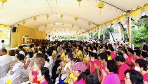 สำหรับพิธีสมโภชน์องค์พระประธาน – พระไตรรัตนพุทธเจ้า หรือพระพุทธเจ้า 3 พระองค์ โดยพระอมิตาภะพุทธเจ้า พระศากยมุนีพุทธเจ้า และพระไภษัชยคุรุพุทธเจ้า ซึ่งถือเป็นพระพุทธเจ้าองค์สำคัญในพุทธศาสนา นิกายมหายาน ซึ่งได้จัดสร้างขึ้นด้วยแรงศรัทธาของประชาชนและผู้มีจิตศรัทธา มีวัตถุประสงค์เพื่อน้อมเกล้าน้อมกระหม่อมถวายเป็นพระราชกุศลแด่ สมเด็จพระเจ้าน้องนางเธอ เจ้าฟ้าจุฬาภรณวลัยลักษณ์ อัครราชกุมารี กรมพระศรีสวางควัฒน วรขัตติยราชนารี และน้อมถวายเป็นพระกุศลแด่ พระเจ้าวรวงศ์เธอ พระองค์เจ้าสิริภาจุฑาภรณ์ และพระเจ้าวรวงศ์เธอ พระองค์เจ้าอทิตยาทรกิติคุณ ด้วยสำนึกในคุณูปการอันทรงคุณประโยชน์ต่อพระพุทธศาสนา และประเทศชาติอย่างอเนกอนันต์