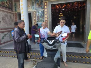วันเสาร์ที่ 10 มกราคม พ.ศ.2569 ณ ศาลไต้ฮงโจวซือภายในมูลนิธิฯ ได้มีพิธีฮู้กี เจิมรถ เจิมเจ้าที่ (ตี่จู้เอี๊ย) ของสาธุชน ที่เจ้าที่ได้เสียหายไปจากเหตุน้ำท่วม หรือที่ต้องการจะบูชาใหม่ขึ้นบ้านใหม่ เปิดกิจการใหม่ ได้นำมาฝากไว้ในศาลไต้ฮงกง หลังจากนั้นได้มีการมอบคำกลอนให้กับคุณวิชัย ธรรมชัยโสภิต (เฮียจื้อ) รองประธานมูลนิธิฯ ผู้วายชนม์ ในศาลา2 ภายในมูลนิธิฯ