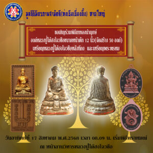 ขอเรียนเชิญสาธุชน ทั้งสายไหว้ สายมู เข้าร่วมในพิธีเททองนำฤกษ์หล่อพระบูชาหลวงปู่ไต้ฮงโจวซือ (องค์หล่อนำฤกษ์) ขนาดหน้าตัก 12 นิ้ว เช่าบูชา 19,000 บาท.- (มีจำนวนจำกัด 50 องค์เท่านั้น) เหรียญหลวงปู่ไต้ฮงโจวซือ และเหรียญพระพรหม ในวันอาทิตย์ที่ 17 สิงหาคม พ.ศ.2568