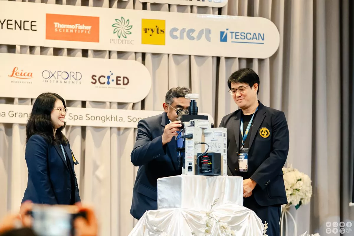 พิธีเปิดได้รับเกียรติจาก ผศ. ดร.นิวัติ แก้วประดับ อธิการบดีมหาวิทยาลัยสงขลานครินทร์ กล่าวเปิดงานอย่างเป็นทางการ โดยเน้นย้ำถึงความสำคัญของวิทยาการจุลทรรศน์ในบริบทของมหาวิทยาลัย โดยเฉพาะในการสนับสนุนงานวิจัยเชิงพื้นที่ อาทิ ความหลากหลายทางชีวภาพเขตร้อน วิทยาศาสตร์ทางทะเล และการเกษตรแบบยั่งยืน ซึ่งเป็นจุดแข็งของมหาวิทยาลัย “การใช้จุลทรรศน์ช่วยให้เรามองเห็นสิ่งเล็ก ๆ ที่มีผลกระทบใหญ่หลวง ไม่ว่าจะเป็นเซลล์พืชที่ทนแล้ง หรืออนุภาคจุลินทรีย์ในมหาสมุทร—สิ่งเหล่านี้นำไปสู่การค้นพบที่สามารถต่อยอดไปสู่การแก้ไขปัญหาในระดับภูมิภาคและระดับโลก” อธิการบดีกล่าว พร้อมขอบคุณคณะวิทยาศาสตร์ที่เป็นเจ้าภาพหลักในการผลักดันงานวิจัยและการจัดงานประชุมในครั้งนี้