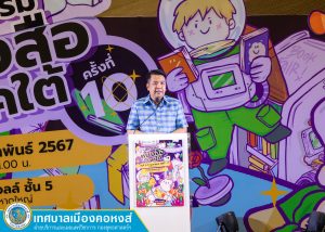 วันศุกร์ที่ 2 กุมภาพันธ์ 2567 นายทวีศักดิ์ ทวีรัตน์ นายกเทศมนตรีเมืองคอหงส์ ร่วมเป็นเกียรติในพิธีเปิดงานมหกรรมหนังสือภาคใต้ ครั้งที่ 10 (Southern Book Expo 2024)พร้อมทั้งเข้ารับเกียรติบัตรสำหรับผู้มีอุปการคุณสนับสนุนในการจัดงาน ซึ่งกิจกรรมครั้งนี้จัดโดยสมาคมผู้จัดพิมพ์และผู้จำหน่วยหนังสือแห่งประเทศไทย ในนามองค์กรภาคประชาสังคม โดยเล็งเห็นถึงความสำคัญของการส่งเสริมการอ่านหนังสือให้เกิดขึ้นในสังคมไทย ภายใต้รูปแบบการจัดงาน “BOOK PLANET : จักรวาลของหนังสือ” มีการจำหน่ายหนังสือ กิจกรรมเวทีเกี่ยวกับการอ่าน และการจัดอบรมสัมมนา ฯลฯ ซึ่งกำหนดจัดขึ้น ระหว่างวันที่ 2 – 11 กุมภาพันธ์ 2567 ณ หาดใหญ่ ฮอลล์ ชั้น 5 ศูนย์การค้าเซ็นทรัล หาดใหญ่