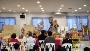 ตะลุงคน วิทยาลัยนาฎศิลป์พัทลุง ทำพิธีไหว้ครูและรับการอบรมจากครู เป็นพิธีอันศักดิ์สิทธิ์และวัฒนธรรมพื้นบ้านภาคใต้ที่สืบทอดมายาวนาน เพื่อกราบไหว้บูชาครูหมอหนังผู้ประสิทธิ์ประสาทวิชา แสดงถึงความกตัญญู ความเชื่อเรื่องครูหมอหนังที่คุ้มครอง และการสืบทอดวัฒนธรรมการแสดงหนังตะลุงให้คงอยู่ยั่งยืน ก่อนขึ้นเวทีการแสดง หลังจากนั้นได้เข้าไปภายในวิหารองค์หลวงปู่ไต้ฮงโจวซือ กราบไหว้ขอพรองค์พระภายในศาล เพื่อความเป็นสิริมงคล ของชาวคณะ