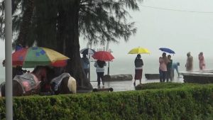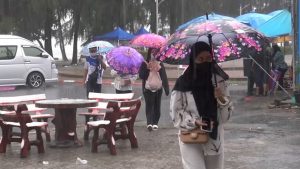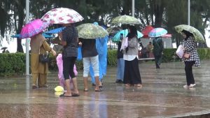 สงขลา-ช่วงนี้ภาคใต้ฝั่งตะวันออกอยู่ในช่วงฤดูมรสุมตะวันออกเฉียงเหนือ พื้นที่เมืองสงขลามีฝนตกอย่างต่อเนื่องติดต่อกันมาหลายวัน แต่แหล่งท่องเที่ยวไม่เงียบเหงา นักท่องเที่ยวชาวมาเลเซียยังคงเดินทางเข้ามาท่องเที่ยว แม้ว่าฝนจะตก คลื่นลมในทะเลมีกำลังแรงก็ตาม ร้านค้ายังคงขายสินค้าให้กับนักท่องเที่ยวได้ แม้ไม่มากนัก