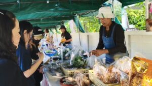 ทางด้านลูกค้าที่มาใช้บริการ บอกว่า โครงการคนละครึ่ง ดีมากสำหรับประชาชนทั่วไป ทำให้เงินสะพัดดีมาก ร้านค้าทุกร้านขายดีมาก ได้ซื้อของมาใช้จ่ายอย่างมีความสุข เป็นนโยบายที่เห็นด้วย โครงการคนละครึ่งทุกคนมีสิทธิ์ใช้หมด ข้าวต้ม ปลาถ้วยละ 100 บาท ก็เหลือ 50 บาท รัฐบาลช่วย อันนี้ดี ส่วนใหญ่ที่ถามทุกคน ชอบหมดกับโครงการนี้ เพราะทุกคนมีสิทธิ์ใช้จ่ายเงินในชีวิตประจำวัน ดูตลาดเกษตรกรนี้ ทุกร้านมีโครงการคนละครึ่งหมด ขอบคุณรัฐบาลที่ให้โครงการนี้กับประชาชนทั่วไป
