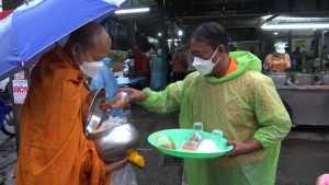 วันนี้ (24 พ.ย.67) เนื่องจากภาคใต้ฝั่งตะวันออกเข้าสู่ฤดูมรสุมตะวันออกเฉียง เหนือแล้ว สภาพอากาศในพื้นที่ จ.สงขลา มีฝนตกตั้งแต่เมื่อคืนนี้ต่อเนื่องถึงช่วงเช้า ส่งผลกระทบต่อพระสงฆ์ ในเขตเทศบาลนครสงขลา ที่ต้องออกเดินรับบิณฑบาตจากประชาชนท่ามกลางสายฝน แม้ว่าในวันนี้ ไม่ใช่วันพระหรือวันธรรมสวนะ อย่างเช่น ที่บริเวณย่านการค้าวชิรา ถนนทะเลหลวง เขตเทศบาลนครสงขลา ก็มีประชาชนนำอาหารคาวหวาน และอาหารแห้งออกมาตักบาตรพระสงฆ์ตามปกติแม้ว่าจะมีฝนตก โดยพระสงฆ์ต้องเดินกางร่มรับบิณฑบาตจากประชาชนสบงจีวรเปียกปอน แต่ก็ต้องออกเดินบิณฑบาตตามกิจของสงฆ์ เนื่องจากมีประชาชนออกมารอตักบาตรพระสงฆ์แม้ว่าฝนจะตกก็ตาม