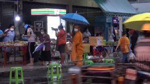วันนี้ (24 พ.ย.67) เนื่องจากภาคใต้ฝั่งตะวันออกเข้าสู่ฤดูมรสุมตะวันออกเฉียง เหนือแล้ว สภาพอากาศในพื้นที่ จ.สงขลา มีฝนตกตั้งแต่เมื่อคืนนี้ต่อเนื่องถึงช่วงเช้า ส่งผลกระทบต่อพระสงฆ์ ในเขตเทศบาลนครสงขลา ที่ต้องออกเดินรับบิณฑบาตจากประชาชนท่ามกลางสายฝน แม้ว่าในวันนี้ ไม่ใช่วันพระหรือวันธรรมสวนะ อย่างเช่น ที่บริเวณย่านการค้าวชิรา ถนนทะเลหลวง เขตเทศบาลนครสงขลา ก็มีประชาชนนำอาหารคาวหวาน และอาหารแห้งออกมาตักบาตรพระสงฆ์ตามปกติแม้ว่าจะมีฝนตก โดยพระสงฆ์ต้องเดินกางร่มรับบิณฑบาตจากประชาชนสบงจีวรเปียกปอน แต่ก็ต้องออกเดินบิณฑบาตตามกิจของสงฆ์ เนื่องจากมีประชาชนออกมารอตักบาตรพระสงฆ์แม้ว่าฝนจะตกก็ตาม