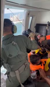 ภาพนาทีทัพเรือภาคที่ 2 ช่วยเหลือลูกเรือประมง ว.ทรัพย์ชานนท์ 9 คน ประสบเหตุเรือโดนกับเรือใหญ่และอับปาง โดยขึ้นเฮลิคอปเตอร์นำส่งเข้าฝั่งที่สนามบินฐานทัพเรือสงขลา ทัพเรือภาคที่ 2 ได้อย่างปลอดภัย