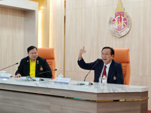 ศาสตราจารย์ ดร.สมบัติ ธำรงธัญวงศ์ กล่าวตอนหนึ่งในการต้อนรับและถ่ายทอดประสบการณ์ว่า ขอบคุณคณะศึกษาดูงานจากมหาวิทยาลัยเทคโนโลยีราชมงคลพระนคร โดยการนำของท่านอธิการบดี ดร.ณัฐวรพล ที่ให้เกียรติมาเยือนมหาวิทยาลัยวลัยลักษณ์ ซึ่ง ม.วลัยลักษณ์ เป็นมหาวิทยาลัยที่มีพื้นที่ขนาดใหญ่ที่สุดในประเทศไทย 9,594 ไร่ ในช่วงต้นเป็นมหาวิทยาลัยที่ยังไม่มีชื่อเสียง หาอาจารย์มาร่วมงานยาก นักศึกษาเก่ง ๆ ยังไม่รู้จักและยังไม่อยากมาเรียน แต่เมื่อสู่ยุดแห่งการเปลี่ยนแปลง มีการเปลี่ยนเกณฑ์คุณภาพใหม่ โดยให้อาจารย์ระดับปริญญาเอกที่รับมาใหม่ต้องทำวิจัยตีพิมพ์ Q1 คนละ 1 ชิ้น และปีที่สองต้องขอตำแหน่งทางวิชาการ และหลักเกณฑ์อื่น ๆ ของมหาวิทยาลัยอย่างชัดเจนและเชิงประจักษ์ ซึ่งคุณภาพอาจารย์ผู้สอนมีผลอย่างมากต่อการพัฒนามหาวิทยาลัยในหลาย ๆ ด้าน โดยเฉพาะคุณภาพการเรียนการสอนและการวิจัย ซึ่งที่ท่านอธิการบดีและคณะมาดูงานในวันนี้ก็จะได้แบ่งปันแนวทางดำเนินงานร่วมกัน