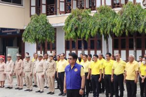 สมาชิกกองอาสารักษาดินแดนอำเภอหาดใหญ่ที่ 4 สมาชิกกองอาสารักษาดินแดน (ประเภทสำรอง) สมาชิกไทยอาสาป้องกันชาติ (ทสปช.) เจ้าหน้าที่ตำรวจสถานีตำรวจภูธรหาดใหญ่ และเจ้าหน้าที่ตำรวจสถานีตำรวจกูธรคอหงส์ ร่วมรับฟังนโยบาย ณ ลานหน้าที่ว่าการอำเภอหาดใหญ่ อำเภอหาดใหญ่ จังหวัดสงขลา