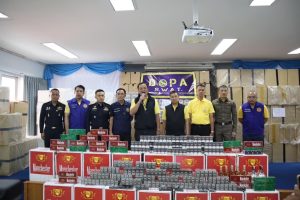 วันที่ 13 ก.ค. 67 เวลา 14:00 น. นายเอก ยังอภัย ณ สงขลา นายอำเภอหาดใหญ่ ร่วมแถลงข่าวการบุกทลายเครือข่ายบุหรี่เถื่อนหาดใหญ่ โดยมีนายอนุทิน ชาญวีรกูล รองนายกรัฐมนตรีและรัฐมนตรีว่าการกระทรวงมหาดไทย นำแถลงข่าวการจับกุมบุหรี่และสุราผิดกฎหมายในพื้นที่หาดใหญ่ และมีนายอรรษิษฐ์ สัมพันธรัตน์ อธิบดีกรมการปกครอง นายสมนึก พรมเขียว ผู้ว่าราชการจังหวัดสงขลา พล.ต.ต.เชาวลิต เลี้ยงสุพงศ์ ผู้บังคับการตำรวจภูธรจังหวัดสงขลา นายภาณุพงศ์ ศรีเกตุ ผู้อำนวยการสำนักงานสรรพสามิตภาคที่ 9 นายรณรงค์ ทิพย์ศิริ ผู้ตรวจราชการกรมการปกครอง ร่วมแถลงข่าว มี ร.ต.อ. เขตรัฐ ชาญศิลป์ ผู้อำนวยการสำนักอำนวยการกองอาสารักษาดินแดน นายวิรุฬห์ สิทธิวงศ์ ผู้อำนวยการสำนักการสอบสวนและนิติการ กรมการปกครอง กระทรวงมหาดไทย พล.ต.ท.สาคร ทองมุณี นายกเทศมนตรีหาดใหญ่ พร้อมด้วย กำนันผู้ใหญ่บ้าน สมาชิกกองอาสารักษาดินแดน เจ้าหน้าที่สถานีตำรวจภูธรหาดใหญ่และสถานีตำรวจภูธรคอหงส์ ให้การต้อนรับ ณ ที่ว่าการอำเภอหาดใหญ่ อำเภอหาดใหญ่ จังหวัดสงขลา