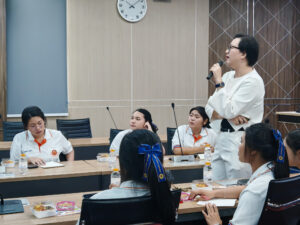 ในโอกาสเดียวกันนี้น้อง ๆ ได้รับฟังข้อมูลแนะนำหลักสูตร รวมทั้งแนวทางการศึกษาต่อ การเตรียมความพร้อมก่อนจบการศึกษาจากมัธยมสู่อุดมศึกษา การเลือกหลักสูตรที่ใช่ ตลอดจนแนวทางการประกอบอาชีพที่เหมาะสมกับตัวเอง โดยมีอาจารย์สำนักวิชาแพทยศาสตร์ สำนักวิชาเภสัชศาสตร์ สำนักวิชาพยาบาลศาสตร์ สำนักวิชาสาธารณสุขศาสตร์ สำนักวิชาสหเวชศาสตร์ และสำนักวิชาวิศวกรรมศาสตร์ฯ ร่วมพบปะพูดคุยให้ข้อมูลแบบเจาะลึก