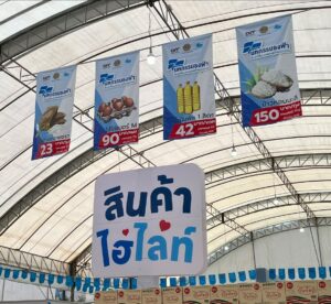ภายในงานมีผู้ประกอบการ กลุ่มเกษตรกร ผู้ผลิต SMEs และวิสาหกิจชุมชน ร่วมจำหน่ายสินค้าอุปโภคบริโภค 10 หมวด กว่า 1,000 รายการ ลดราคาสูงสุด 60% เช่น บะหมี่กึ่งสำเร็จรูป ปลากระป๋อง ซอสปรุงรส น้ำยาซักผ้า ของใช้ประจำวัน เครื่องครัว อุปกรณ์ช่าง เครื่องแต่งกาย และสินค้าชุมชนอื่น ๆ สำหรับสินค้าไฮไลท์ราคาพิเศษ ได้แก่ ไข่ไก่เบอร์ M แผงละ 90 บาท , น้ำตาลทราย กิโลกรัมละ 23 บาท ,น้ำมันพืชปาล์ม ขวดละ 42 บาท ,ข้าวหอมมะลิ (5 กก.) ถุงละ 150 บาท ,ลองกอง กิโลกรัมละ 35 บาท / นอกจากนี้ยังมีการเชื่อมโยงสินค้าจากเกษตรกรและผู้ประกอบการในจังหวัดสงขลามาจำหน่ายภายในงานด้วย เพื่อสร้างรายได้และช่วยเหลือเกษตรกรโดยตรง