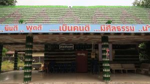 จากข้อมูลระบุว่า การที่รับเป็นขวดมาตกแต่ง นอกจากจะเป็นการประหยัดงบประมาณแล้ว วัสดุรีไซเคิลเหล่านี้ยังแฝงคติธรรมที่สะท้อนให้เห็นถึงความฟุ่มเฟือยของมนุษย์ ซึ่งหมดไปกับสิ่งมึนเมาไร้ประโยชน์ ไว้คอยย้ำเตือนจิตใจคนไม่ให้ลุ่มหลงของมึนเมา ทั้งนี้ ปัจจุบันเจดีย์ทรงไทยที่ทำด้วยขวดมีสภาพทรุดโทรมตามกาลเวลา และอาศัยการปรับปรุงด้วยแรงกายจากพระสงฆ์ ชาวบ้านในพื้นที่ และยังคงรอการมาเยือนของนักท่องเที่ยว