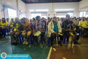 วันที่ 5 ธันวาคม 2567 นายเอก ยังอภัย ณ สงขลา นายอำเภอหาดใหญ่ พร้อมด้วย นางมุกดา ยังอภัย ณ สงขลา ประธานแม่บ้านมหาดไทยอำเภอหาดใหญ่ นางสาวรติยาภรณ์ ชูแก้ว นางสาวไทยจังหวัดสงขลาประจำปี 2568 หัวหน้าส่วนราชการในอำเภอหาดใหญ่ และตัวแทนเหล่ากาชาดจังหวัดสงขลา ลงพื้นที่ชุมชนบ้านคลองหวะ เพื่อมอบชุดธารน้ำใจจากสภากาชาดไทย เพื่อช่วยเหลือผู้ประสบอุทกภัยในเขตเทศบาลเมืองคอหงส์ จำนวน 600 ชุด โดยมีนายทวีศักดิ์ ทวีรัตน์ นายกเทศมนตรีเมืองคอหงส์ กล่าวรายงานสถานการณ์อุทกภัยในพื้นที่ ณ อาคารอเนกประสงค์บ้านคลองหวะ เทศบาลเมืองคอหงส์