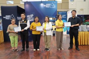 ศุภผลกุลนันทร์ ประธานสภาเทศบาลนครหาดใหญ่ ผู้เข้าร่วมโครงการและวิทยากรจากศูนย์วิศวกรรมยาง คณะวิศวกรรมศาสตร์ มหาวิทยาลัยสงขลานครินทร์ ร่วมพิธีปิดและมอบประกาศนียบัตร ในโครงการการต่อยอดและขยายผลการสร้างสรรค์ผลิตภัณฑ์หัตถกรรมจักสานจากนวัตกรรมวัสดุเพื่อความยั่งยืน (วัสดุจักสานยางธรรมชาติเทอร์โมพลาสติก) เพื่อยกระดับผลงานหัตถกรรมไทยสู่สากล