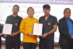 รองผู้ว่าราชการจังหวัดสงขลา กล่าวว่า การขับเคลื่อนโครงการเพิ่มทักษะด้านอาชีพแก่นักเรียนที่ไม่ได้เรียนต่อหลังจบการศึกษาภาคบังคับเป็นการส่งเสริมศักยภาพให้กับนักเรียนที่เข้ารับการอบรม ขอขอบคุณทุกหน่วยงานที่ได้บูรณาการความร่วมมือกันอย่างจริงจัง เป็นรูปธรรม เกิดผลสำเร็จ ที่จะ พัฒนากำลังแรงงานให้มีคุณภาพ มีประสิทธิภาพ เพื่อเพิ่มโอกาสในการประกอบอาชีพและที่สำคัญ ต้องขอแสดงความยินดีกับผู้ผ่านการฝึกอบรมทั้ง 45 คน ขอให้ทุกท่านจงภูมิใจและรักในอาชีพเพื่อประโยชน์ที่จะเกิดกับตนเอง ครอบครัวและประเทศชาติต่อไป