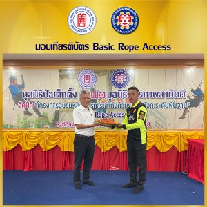 เมื่อวันที่ 18 มีนาคม พ.ศ.2568 ที่ผ่านมา มูลนิธิมิตรภาพสามัคคี(ท่งเซียเซี่ยงตึ๊ง) หาดใหญ่ ได้มีพิธีมอบเกียรติบัตรให้กับเจ้าหน้าที่ที่จบการฝึกตาม “โครงการอบรมหลักสูตรการเข้าถึงด้วยระบบเชือก ระดับพื้นฐาน” ( Basic Rope Access ) โดยให้ตัวแทนใช้ความรู้จากการฝึกใช้ระบบเชือกปีนขึ้นไปรับมอบบริเวณใต้โดม ของมูลนิธิฯ หลังจากเสร็จพิธีดังกล่าว จึงได้ย้ายไปทำพิธีมอบเกียรติบัตรอย่างเป็นทางการ ณ ห้องประชุมชั้น2 ตึกศูนย์วิทยุฯ โดยมีคุณกิตติชัย ธรรมศิริพงษ์ รองประธานมูลนิธิฯ ,คุณวิเชียร เดชธีรชัย หัวหน้าแผนกบรรเทาสาธาณภัย-กู้ภัย เข้าร่วมในพิธีมอบเกียรติบัตร ซึ่งได้รับเกียรติจากรองประธานมูลนิธิฯ เป็นผู้มอบเกียรติบัตรให้ด้วยตนเอง หลังจากนั้นรองประธานมูลนิธิฯ ได้มอบของที่ระลึกให้กับครูผู้ฝึกสอนจากมูลนิธิป่อเต็กตึ๊ง