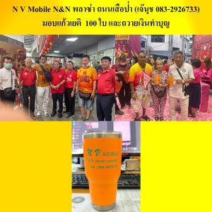 ที่มูลนิธิป่อเต็กตึ๊ง กรุงเทพฯ  NV Mobile N&N พลาซ่า ถนนเสือป่า (เจ๊นุช 083-2926733) ได้มอบเงินทำบุญให้กับมูลนิธิฯ เพื่อถวายแด่ องค์หลวงปู่ไต่ฮงโจวซือ องค์เจ้าแม่ลิ้มโกวเหนี่ยว องค์ฮกเต็กแปะกง และองค์นาจาไทจื้อ พร้อมทั้งยังได้มอบแก้วน้ำเยติ จำนวน 100 ใบ ให้กับคณะอัญเชิญองค์หลวงปู่ไต่ฮงโจวซือ องค์เจ้าแม่ลิ้มโกวเหนี่ยว องค์ฮกเต็กแปะกง และองค์นาจาไทจื้อ ไปนมัสการพระพุทธบาท จ.สระบุรี
