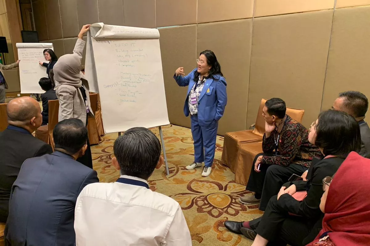 โดยในครั้งนี้ ศาสตราจารย์ ดร.อัญชนา ประเทพ ได้เข้าร่วมอภิปรายกลุ่ม โดยมีดร.ศรพล ตุลยะเสถียร รองผู้จัดการ หัวหน้าสายงานวางแผนกลยุทธ์องค์กรและโครงการกลยุทธ์ หัวหน้าสายงานพัฒนาความยั่งยืนตลาดทุน และหัวหน้ากลุ่มงานกลยุทธ์องค์กร ร่วมแชร์ประสบการณ์การนำ ESG เข้ามาใช้ในตลาดหลักทรัพย์ พร้อมมอบหลักคิดในการนำ ESG มาใช้ในสถาบันการศึกษาอย่างเป็นรูปธรรมและมีประสิทธิภาพ ซึ่งผลจากการเสวนานำมาซึ่งหัวข้อที่สถาบันอุดมศึกษาควรเริ่มดำเนินการเพื่อขับเคลื่อน ESG ทั้งนี้ยังได้มีการลงนามความร่วมมือเพื่อสร้างความร่วมมืออย่างเป็นรูปธรรมระหว่างมหาวิทยาลัยในประเทศไทยและประเทศอินโดนีเซีย เพื่อขับเคลื่อน ESG ของทั้งสองประเทศ พร้อมทั้งยืนยันการผนึกความร่วมมือและดำเนินงานร่วมกันผ่านพิธีลงนามของทั้งสองประเทศ