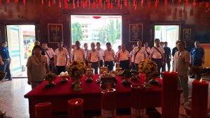 โดยคณะได้เข้าสักการะองค์หลวงปู่ไต้ฮงโจวซือภายในศาลเจ้าเพื่อความเป็นสิริมงคล และได้ไปยังห้องประชุมใหญ่เพื่อร่วมพูดคุยแลกเปลี่ยนในเรื่องต่างๆของการดำเนินงานทั้งสองมูลนิธิ หลังจากเสร็จสิ้นการพูดคุยร่วมกันแล้ว มูลนิธิซิวเต็กเซี่ยงตึ๊งและมูลนิธิมิตรภาพสามัคคีหาดใหญ่ได้มอบของที่ระลึกซึ่งกันและกันและร่วมรับประทานอาหารมื้อกลางวัน ซึ่งทางมูลนิธิมิตรภาพสามัคคี เป็นเจ้าภาพจัดเลี้ยง