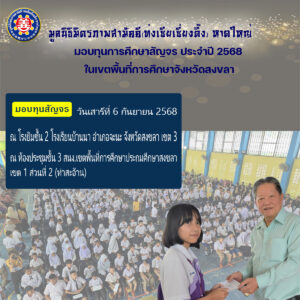 มูลนิธิมิตรภาพสามัคคี(ท่งเซียเซี่ยงตึ๊ง) หาดใหญ่ เตรียมจัดพิธีมอบทุนการศึกษาแก่นักเรียน-นักศึกษา ในพื้นที่เขตการศึกษาจังหวัดสงขลา ประจำปี 2568 โดยมีกำหนดการดังนี้