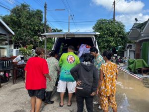 เมื่อเวลา 12.00 น. (2 ธ.ค. 67) จนท.-อาสาสมัครกู้ภัยมูลนิธิมิตรภาพสามัคคี (ท่งเซียเซี่ยงตึ๊ง) หาดใหญ่ นำอาหาร ของแห้ง น้ำดื่ม มาแจกจ่ายประชาชนที่หมู่บ้านลัดดา , ซอยสามสกุล ต.ควนลัง อ.หาดใหญ่ จ.สงขลา เพื่อช่วยเหลือและบรรเทาความเดือดร้อนในเบื้องต้นหลังน้ำลดจากเหตุอุทกภัย จากการลงพื้นที่แจกสิ่งของพบว่า ประชาชนเริ่มมีการทำความสะอาดบ้านและนำข้าวของเครื่องใช้ออกมาผึ่งแดดให้แห้ง