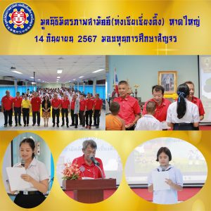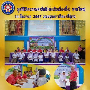 วันนี้ 14 กันยายน 2567 มูลนิธิมิตรภาพสามัคคี(ท่งเซียเซี่ยงตึ๊ง) หาดใหญ่ โดยรองประธานมูลนิธิฯ พร้อมด้วยคณะกรรมการมูลนิธิฯ ได้เดินทางไปมอบทุนการศึกษาแบบสัญจร แก่นักเรียนในพื้นที่เขตการศึกษาจังหวัดสงขลา ประจำปี 2567 โดยมีรายละเอียดดังนี้