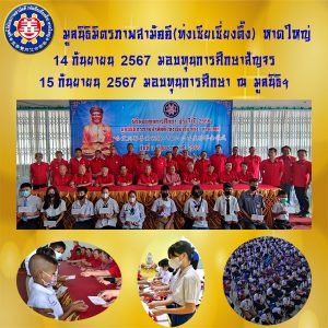 มูลนิธิมิตรภาพสามัคคี(ท่งเซียเซี่ยงตึ๊ง) หาดใหญ่ เตรียมจัดพิธีมอบทุนการศึกษาแก่นักเรียน-นักศึกษา ในพื้นที่เขตการศึกษาจังหวัดสงขลา ประจำปี 2567 จำนวน 1,478 ทุนๆการศึกษาละ 2,000 บาท และ ทุนพิเศษสำหรับการประกวดเรียงความชนะเลิศอีก จำนวน 6 ทุนๆการศึกษาละ 5,000 บาท รวมจำนวนทุนทั้งสิ้น 1,484 ทุน เป็นเงินทั้งสิ้น 2,986,000 บาท โดยมีกำหนดการดังนี้