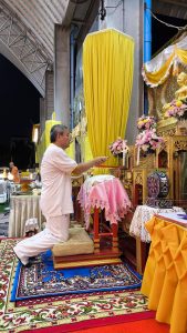 หลังจากนั้น เวลา 19.30 น. เป็นพิธีเจริญพระพุทธมนต์ เวียนธูปเทียน ซึ่งในวันนี้คุณประพันธ์ ว่องสุวรรณเลิศ รองประธานมูลนิธิฯ และ คุณกฤษณ์ อารยานุมาศ รองประธานมูลนิธิฯ เป็นประธานในพิธีเจริญพระพุทธมนต์ โดยมีคณะสวดมนต์โพธิจิตเป็นผู้นำสวด นอกจากนี้ในพิธีสวดพระอภิธรรมและพิธีเจริญพุทธมนต์ ทางมูลนิธิฯ ยังได้รับเกียรติจากคณะกรรมการ แขกผู้ทรงเกียรติ รวมถึงพี่น้องประชาชนที่ได้ข้าร่วมในพิธีดังกล่าว