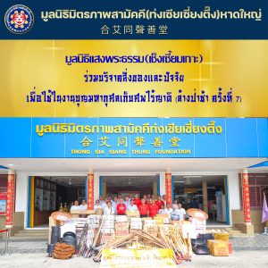 วันนี้ (2 มิย.67) เวลา 10.00 น. คุณวิโรจน์ วศินะจินดาแก้ว ประธานมูลนิธิแสงพระธรรม(เช็งเซี้ยมเกาะ) ได้มอบหมายให้คุณณัฐกร ลีลากุศล เหรัญญิกมูลนิธิแสงพระธรรม(เช็งเซี้ยมเกาะ) พร้อมด้วยชาวคณะ มอบสิ่งของ จำนวน 34 รายการ พร้อมมอบปัจจัยเพื่อใช้ในงานบุญมหากุศลเก็บศพไร้ญาติ ล้างป่าช้า ครั้งที่7 ของมูลนิธิมิตรภาพสามัคคี(ท่งเซียเซี่ยงตึ๊ง) หาดใหญ่ โดยมีคุณกิตติชัย ธรรมศิริพงษ์ รองประธานฯ ,คุณกฤษณ์ อารยานุมาศ รองประธานฯ ,คุณจรินทร์ ลิ้มพันธ์อุดม รองเหรัญญิก ,คุณพลกฤษณ์ อารยานุมาศ รองเลขานุการไทย ,คุณกิตติศักดิ์ ปราชญาเปรื่อง หัวหน้าธุรการ ,คุณณัฐพงค์ สุวรรณรุจิพร รองธุรการ ,คุณวิเชียร เดชธีรชัย หัวหน้าแผนกบรรเทาฯ ,คุณสุธน ปราชญาเปรื่อง รองศาสนพิธี เป็นตัวแทนให้การต้อนรับ และรับมอบสิ่งของดังกล่าว หลังจากนั้นได้นำคณะมูลนิธิแสงพระธรรม กราบไหว้สิ่งศักดิ์สิทธิ์ภายในศาลเจ้าของมูลนิธิฯ และเข้าร่วมพบปะพูดคุยถึงงานล้างป่าช้า ครั้งที่7 ที่จะถึงนี้ ณ ห้องประชุมย่อย อาคารสำนักงาน
