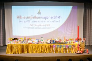 วันนี้ (13 พฤศจิกานยน 2566) รศ.นพ.เรืองศักดิ์ ลีธนาภรณ์ คณบดีคณะแพทยศาสตร์ มหาวิทยาลัยสงขลานครินทร์ และประธานมูลนิธิโรงพยาบาลสงขลานครินทร์ พร้อมด้วยคณะกรรมการมูลนิธิโรงพยาบาลสงขลานครินทร์ ร่วมพิธีมอบหนังสือและอุปกรณ์กีฬา แก่โรงเรียนต่างๆในภาคใต้ เพื่อให้เด็ก ๆ มีความรู้ ความสามารถ และมีทักษะเพิ่มขึ้น ทั้งในด้านความรู้และการกีฬา โดยมีตัวแทนครูและผู้บริหารจากโรงเรียนต่างๆร่วมรับมอบ ณ ห้องทองจันทร์ หงศ์ลดารมภ์ อาคารเรียนรวมและหอสมุดคณะแพทยศาสตร์