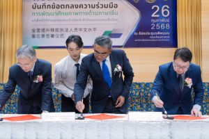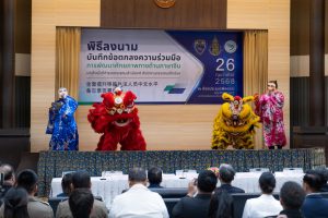 มหาวิทยาลัยสงขลานครินทร์ นำโดย ผศ. ดร.นิวัติ แก้วประดับ อธิการบดี เข้าร่วมในพิธีลงนามบันทึกข้อตกลงความร่วมมือ (MOU) การพัฒนาศักยภาพทางด้านภาษาจีนแก่เจ้าหน้าที่ตำรวจตรวจคนเข้าเมือง ในสังกัดกองบังคับการตรวจคนเข้าเมือง 6 โดยมี พล.ต.ต.ทรงโปรด สิริสุขะ ผู้บังคับการตรวจคนเข้าเมือง 6 เป็นประธานในพิธีเปิด พร้อมด้วย ดร. พนิดา สุขศรีเมือง คณบดีคณะศิลปศาสตร์ ดร. ศักดา ขจรบุญ คณบดีคณะศิลปศาสตร์และวิทยาการจัดการ นายถัง จื้อหย่ง ผู้อำนวยการสถาบันขงจื้อ มหาวิทยาลัยสงขลานครินทร์ นายวัง จื้อเจียน กงสุลใหญ่แห่งสาธารณรัฐประชาชนจีนประจำจังหวัดสงขลา คณะผู้บริหาร บุคลากร เจ้าหน้าที่ตำรวจตรวจคนเข้าเมือง และสื่อมวลชน เข้าร่วมในพิธี ณ ห้องประชุมรพีพรรณ คณะศิลปศาสตร์ มหาวิทยาลัยสงขลานครินทร์ เมื่อวันที่ 26 กุมภาพันธ์ 2568