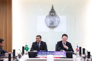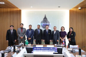 มหาวิทยาลัยสงขลานครินทร์ นำโดย ผศ. ดร.เถกิง วงศ์ศิริโชติ รองอธิการบดีฝ่ายวิชาการและวิเทศสัมพันธ์ ให้การต้อนรับคณะผู้แทนระดับสูงจากประเทศปากีสถาน นำโดย Prof. Dr. M. Iqbal Choudhary ผู้ประสานงานทั่วไป คณะกรรมการถาวรว่าด้วยความร่วมมือด้านวิทยาศาสตร์และเทคโนโลยี (COMSTECH) ซึ่งเป็นองค์กรด้านวิทยาศาสตร์และเทคโนโลยีภายใต้องค์การความร่วมมืออิสลาม (OIC) พร้อมด้วย ผู้แทนจาก Pakistan Halal Authority ในโอกาสเดินทางเยือนมหาวิทยาลัยสงขลานครินทร์ และเข้าร่วมงาน World HAPEX 2025 ภายใต้การนำของสถานทูตไทย ณ กรุงอิสลามาบัด โดยนายเปายี แวสะแม นักการทูตชำนาญการ (ที่ปรึกษา) เมื่อวันที่ 1 สิงหาคม 2568 ที่ผ่านมา