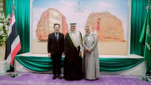 โดยรองอธิการบดีฝ่ายวิชาการและวิเทศสัมพันธ์ ได้มอบกระเช้าดอกไม้แสดงความยินดีแด่ นายอับดุรเราะห์มาน อับดุลอะซีซ อัลซุฮัยบานี (His Excellency Mr. Abdulrahman Abdulaziz Alsuhaibani) เอกอัครราชทูตราชอาณาจักรซาอุดีอาระเบียประจำประเทศไทย บรรยากาศภายในงานเต็มไปด้วยความอบอุ่นและมิตรไมตรี มีแขกผู้มีเกียรติจากหลายภาคส่วนเข้าร่วมแสดงความยินดีและเฉลิมฉลองความสัมพันธ์อันแน่นแฟ้นระหว่างประเทศไทยและราชอาณาจักรซาอุดีอาระเบีย