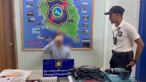 และจับกุมนายชาไท ออสโกนูลเลอร์ อายุ 45 ปี สัญชาติ ตุรกี ได้ที่ภายในร้านแห่งหนึ่ง ในพื้นที่ ม.8 ต.เกาะพะงัน อ.เกาะพะงัน จ.สุราษฎร์ธานี กำลังใช้เครื่องมือสว่านไฟฟ้า ใช้ตลับเมตรตรวจวัดระยะห่างบริเวณกำแพง ทำความสะอาดสิ่งของตกแต่งภายในร้าน พร้อมยึดของกลาง สว่านไฟฟ้า ยี่ห้อ Dewalt สีเหลือง , ตลับเมตร ยี่ห้อ Stanley สีเหลือง ก่อนแจ้งข้อหา”เป็นบุคคลต่างด้าวทำงานโดยไม่มีใบอนุญาตทำงาน”จึงนำตัวทั้ง 2 คนส่งพนักงานสอบสวน สภ.เกาะพะงัน ดำเนินคดีตามกฎหมายต่อไป