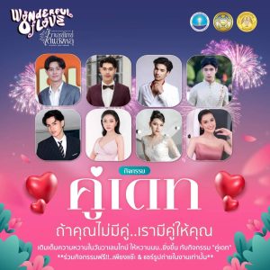 กิจกรรม คู่เดท ถ้าไม่มีคู่ เรามีคู่ให้คุณ ในงาน Wonderful of Love วาเลนไทน์ใต้แสงพลุ *ร่วมกิจกรรมฟรี เพียงแช๊ะ&แชร์ รูปถ่ายในงานเท่านั้น ร่วมสนุกกันได้ตั้งแต่เวลา 18.00 น. เป็นต้นไป