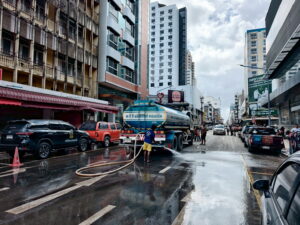 วันที่ 6 ธันวาคม 2568 นายกแป้น พร้อมด้วย นายสมชัย จันทร์ประทีป รองนายกฯ นายศุภชัย ไชยวรรณ รองปลัดเทศบาล นำเจ้าหน้าที่จากสำนักสาธารณสุขและสิ่งแวดล้อม ร่วมปฏิบัติการ “Big Cleaning” เร่งฟื้นฟูเมืองหาดใหญ่ ร่วมกับกรมป้องกันและบรรเทาสาธารณภัย , อาสารักษาดินแดน (อส.) จากกรมการปกครอง เทศบาลนครบ้านสวน จังหวัดชลบุรี และหน่วยงานที่เข้าร่วมสนับสนุนปฏิบัติการในครั้งนี้ โดยนำเจ้าหน้าที่ชุดปฏิบัติการ พร้อมด้วยเครื่องจักรกลสาธารณภัย อาทิ รถขุดตักล้อยาง รถบรรทุกน้ำอเนกประสงค์ และรถบรรทุกเทท้าย ร่วมกันเก็บขนย้ายขยะ เคลียร์สิ่งกีดขวาง ฉีดล้างทำความสะอาดถนนและบ้านเรือน ตลอดจนช่วยประชาชนเก็บกวาดทำความสะอาด โดยในวันนี้ลงพื้นที่ปฏิบัติการ ณ บริเวณย่านการค้า ตลาดกิมหยงต่อเนื่องไปจนถึงถนนศุภสารรังสรรค์