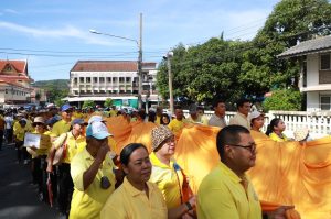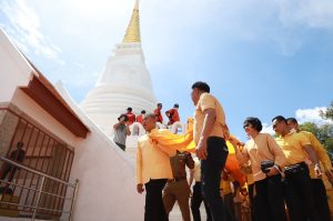 วันนี้ (29 ต.ค.66) เวลา 09.00 น. ที่บริเวณเชิงบันไดเขาตังกวน อำเภอเมือง จังหวัดสงขลา นายวรณัฎฐ์ หนูรอต รองผู้ว่าราชการจังหวัดสงขลา เป็นประธานในพิธีห่มผ้าองค์เจดีย์หลวงเขาตังกวน ซึ่งเป็นกิจกรรมหนึ่งในงานประเพณีลากพระและตักบาตรเทโว ประจำปี 2566 โดยมี นายไพเจน มากสุวรรณ์ นายกองค์การบริหารส่วนจังหวัดสงขลา นายวันชัย ปริญญาศิริ นายกเทศมนตรีนครสงขลา นายเศวต เพชรนุ้ย ปลัดจังหวัดสงขลา นางสาวดุษฎี พฤกษเศรษฐ หัวหน้าสำนักงานจังหวัดสงขลา พร้อมด้วยส่วนราชการ และพุทธศาสนิกชนชาวสงขลาหลั่งไหลเข้าร่วมขบวนแห่ผ้าห่มขึ้นเขาตังกวนด้วยความศรัทธา โดยเริ่มจากบริเวณลานคนเมือง (ข้างวัดโพธิ์ปฐมาวาส) และแห่ไปตามถนนสายต่าง ๆ ในเขตเทศบาลนครสงขลา เพื่อให้ประชาชนได้สักการะบูชาและสืบสานประเพณีอันดีงามทางพระพุทธศาสนา ก่อนจะร่วมอัญเชิญไปห่มองค์เจดีย์หลวงบนเขาตังกวน ซึ่งเป็นสถานที่ประดิษฐานเจดีย์หลวงฯ เพื่อทำการเปลี่ยนผ้าห่มองค์เจดีย์