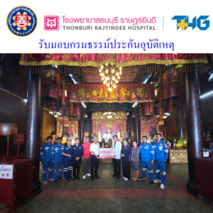 หลังจากนั้นคุณกิตติชัย ธรรมศิริพงษ์ รองประธานมูลนิธิฯ ได้กล่าวขอบคุณแทนเจ้าหน้าที่ทุกคน ที่ทางโรงพยาบาลธนบุรี ราษฎร์ยินดี ได้มอบกรมธรรม์ประกันอุบัติเหตุให้ในครั้งนี้ ถือว่าเป็นสิ่งดีที่ทำให้เจ้าหน้าที่ มีกำลังใจในการทำงานช่วยเหลือสังคมต่อไป