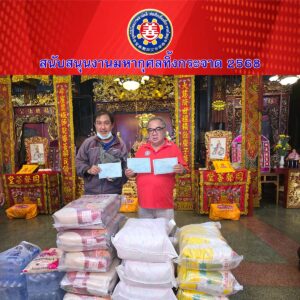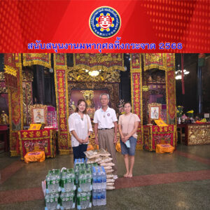คุณกัญญาภัก แสงบุญญา บริจาค น้ำดื่ม 10 แพ็ค ข้าวสาร 5 ถุง มาม่า 4 แพ็ค คุณวิษณุ กลิ่นสุวรรณ สวง กลิ่นสุวรรณ นันท์สินี แก้วนาบอน บริจาค ข้าวสาร 1 ถุง น้ำดื่ม 7 แพ็ค เพื่อนำมาร่วมในงานมหากุศลทิ้งกระจาด ประจำปี 2568 ที่ทางมูลนิธิฯ จัดขึ้นในระหว่างวันที่ 19 – 23 สิงหาคม พ.ศ.2568 โดยมีคุณสาธร เดชะเมธากุล หัวหน้าตรวจสอบบัญชี เป็นผู้รับมอบ