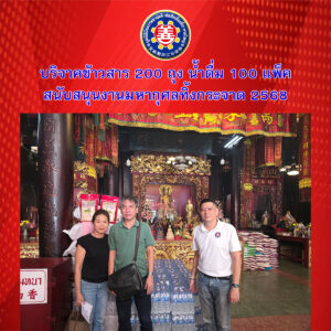 วันพฤหัสบดีที่ 14 สิงหาคม พ.ศ.2568 คุณแม่จู และครอบครัวชัยพิทักษ์โรจน์ ,ครอบครัววงศ์วิเชียร ,ครอบครัวไตรศุภกิตติ, ครอบครัวเจริญยิ่งสกุล ,ครอบครัวศุภกิจบุญชู และครอบครัวซาดาเท(ฝน) เดินทางเข้ามามอบข้าวสาร 200 ถุง พร้อมน้ำดื่ม 100 แพ็ค เพื่อนำมาร่วมในงานงานมหากุศลทิ้งกระจาด ประจำปี 2568 ที่จะมีขึ้นในระหว่างวันที่ 19 – 23 สิงหาคม พ.ศ.2568 ที่จะถึงนี้ โดยมีนายพลกฤษณ์ อารยานุมาศ รองเลขานุการไทยของมูลนิธิฯ เป็นผู้รับมอบ